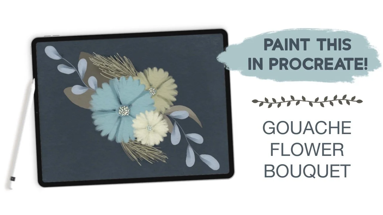 In this Procreate video tutorial, we will use gouache brushes to paint a beautiful bunch of flowers, and learn quite a few tips and tricks along the way as well. If you’re signed up for the Birch Grove, there are several free resources to go with this, including a paper texture, a sketch that lays out the placement of the flowers, and a color palette for the bouquet.